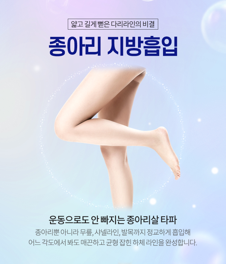 종아리 지방흡입이 필요한 고민에 따라 부위별로 지방이 축적된 정도를 확인하여 여의사 대표원장님의 1:1 맞춤 디자인을 통해 어느 각도에서 봐도 날씬하면서도 예쁜 다리라인을 완성합니다.